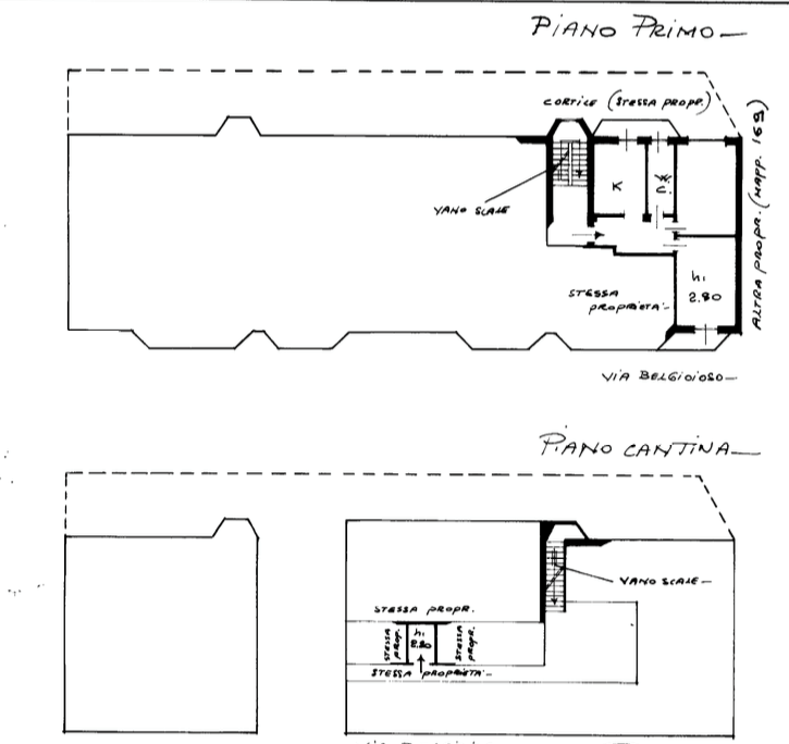 Appartamento al primo piano, senza ascensore, composto da due locali, cucina e servizi, con annesso vano cantina al piano cantinato.