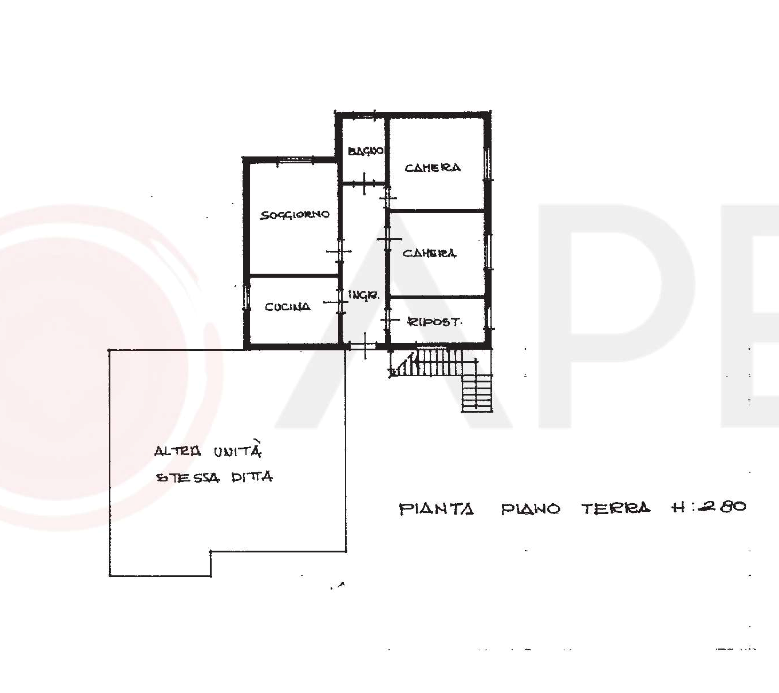 Appartamento al piano terra, composto da ingresso, ripostiglio, 2 camere, bagno, soggiorno e cucina,